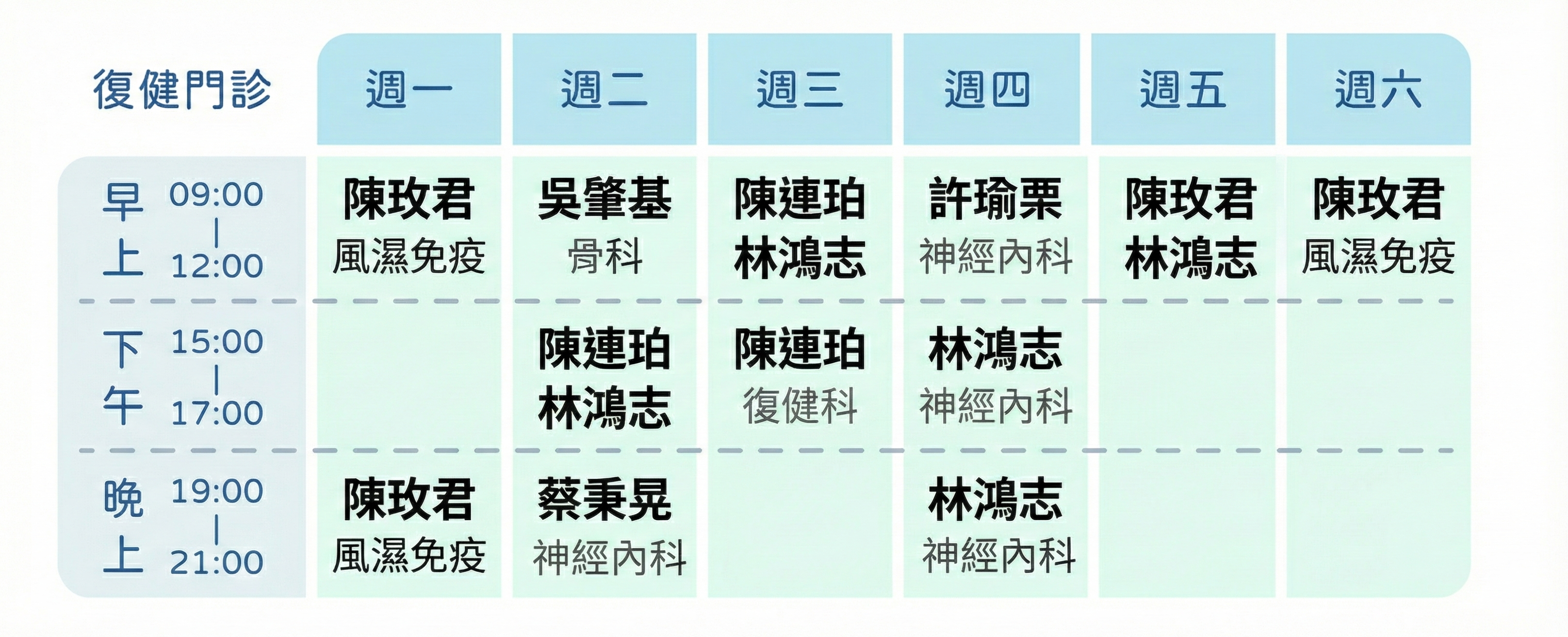 除了復健科及骨科,亦有神經內科及風濕免疫科醫師可開立復健處方。