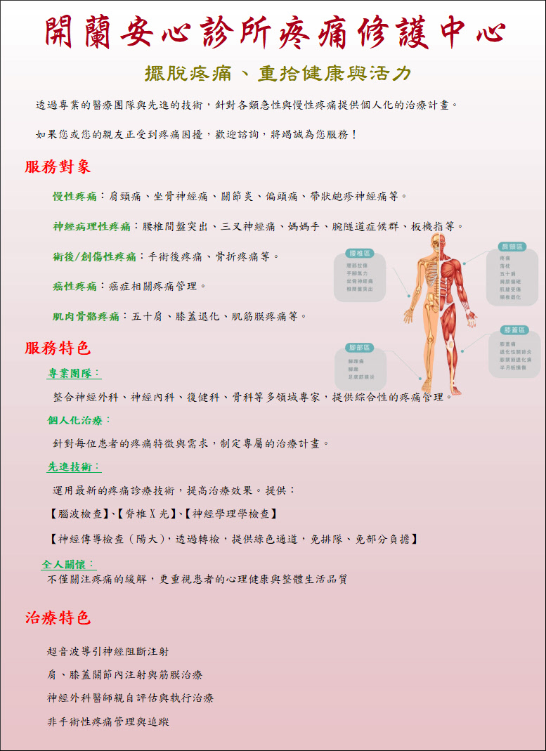 神經外科疼痛修護特別門診 -疼痛相關神經病變評估與治療